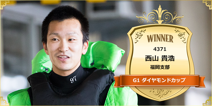 千両役者が魅せた。徳山ダイヤモンドカップを制したのは西山貴浩だ。前節に同期の田中和也が乗って優勝したモーター57号機を手にした西山は、シリーズ序盤から軽快な走りを見せて予選を4・2・1・3・1・2着でトップ通過。準優をイン逃げで快勝して優勝戦ポールポジションを獲得する。8月のびわこ周年では優勝戦1号艇で3着に敗れた西山だが、今節はインからコンマ02の弾丸ショットを決めて逃げ快勝。見事に雪辱を果たして頂点に立った。