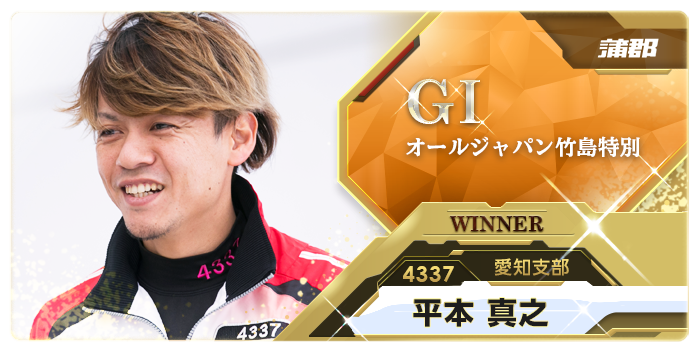 勝った平本はG1通算4回目の優勝で蒲郡記念初制覇。これで賞金ランキング16位に浮上し、3年連続4回目のグランプリ出場へ一歩前進している。