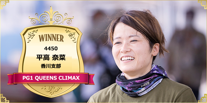 平高は今年6月に右腕を骨折。序盤の好調さから一転、下半期は思い描くレースができなかった。それでも着実にリズムを立て直し、今節は2、2、1着のオール2連対で優勝戦1号艇をゲット。トライアル3回戦12R、優勝戦ともコンマ01スタートを踏み込む勝負度胸で、待ちに待ったクイーンの座を射止めた。女子の獲得賞金額もトップとなった。なお、次走は1月3日からの徳山オールレディース戦に出場する予定。