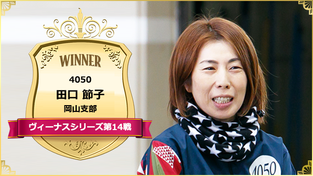田口は予選トップ通過から要所を締め、貫禄を示した。女子賞金10位(15日時点)をキープしつつ、9位の松本晶恵らに迫った。なお、次走は10月24日からの常滑ヴィーナスシリーズ戦に出場する予定。