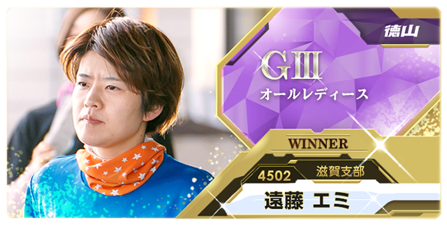 遠藤は初日連勝に始まり、2日目以降も的確に着をまとめ、予選をトップ通過した。準優12R、優勝戦とも危なげのない、格上らしい強さを発揮した。今年の女子賞金ランクは2位を維持しつつ、トップの平高奈菜に迫ってきた。なお、次走は5月31日からの戸田オールレディース戦に出場する予定。