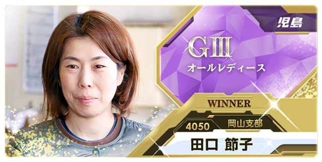 地元でリベンジVを果たした。今年3月、当地優勝戦1号艇で2着に敗れた田口節子がインから逃げ、前節の平和島オールレディース戦に続く2節連続、今年3回目、通算62回目の優勝を飾った。