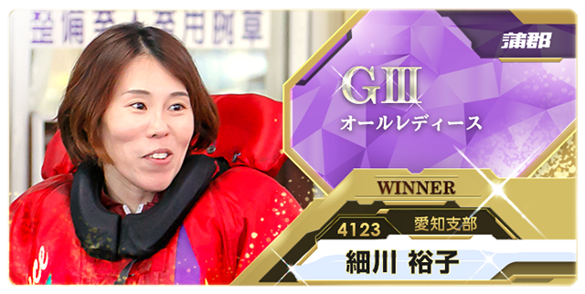 最終日は晴れ。ただし、風が徐々に強まり、横風5メートルで優勝戦が行われた。枠なりの3対3から②渡邉がコンマ10のトップスタート。①細川が同11で続いた。しかし、同15の④高田が強烈パワーで伸び、まくり勝負に出た。それでも①細川がけん制しながら力強く先手を奪った。②渡邉が差し迫ったが、首位には届かず、①細川が押し切った。②渡邉が2着。3着は④高田、⑤堀之内が競ったが、④高田がしのいだ。