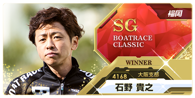 福岡で行われたSG第56回ボートレースクラシック。21年のSG開幕戦を制したのは石野貴之だ。2連対率4位の好モーター46号機を手にした石野は、予選を5・3・1・2・1・3着の2位で通過。準優でイン逃げを決めて優出を獲得し、予選1位の寺田祥が準優3着で敗退したことでポールポジションを手にした。そして優勝戦はインからコンマ11のトップスタートで逃げ快勝。クラシック初Vを飾った。