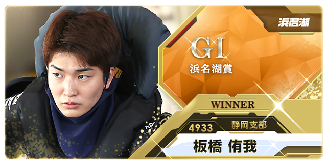 静岡支部にニューヒーロー誕生だ。浜名湖周年を地元の板橋侑我が制した。2連対率2位の好モーター48号機を引き当てた板橋は、初日に4コースまくり差し、2日目に2コース差しを決めるなど序盤から快走を連発。4日目には5コースまくりも決め、予選を1・1・3・4・1着でトップ通過する。そして準優はインからコンマ01で逃げ切ってG1初優出を果たすと、優勝戦もインからコンマ08のトップスタートで逃げ圧勝。25歳でG1初タイトルを手にした。