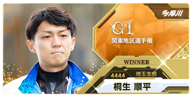 多摩川で行われた関東地区選手権。是政決戦を制したのは桐生順平だ。2連対率5位タイの好モーターを手にした桐生は、予選を1・1・2・1・2・2着のオール2連対でトップ通過。圧倒的な強さでV争いの主導権を握る。そして準優・優勝戦はいずれも江口晃生の前付けを受けながらインを死守して逃げ切り快勝。関東地区選は16年多摩川大会と19年平和島大会に続く3回目の優勝となった。