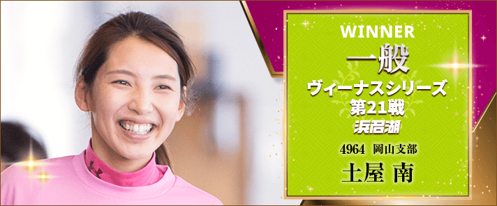 最終日も風が強く、安定板を使用。追い風5メートルで優勝戦が行われた。枠なりの3対3から④土屋がコンマ03のトップスタート。スロー勢を一気にたたいた。ただし、風圧を受けた分、ターンは流れ、イン小回りの①山川が盛り返した。迫る①山川に対し、④土屋は果敢に攻めたが、ターンは大きく膨れた。その隙に⑥間庭が浮上。2周目のホームで、ほぼ並走になったが、④土屋はまたもや全速ターンを選択。これが見事に決まった。①山川が2着、初優勝のかかった⑥間庭は惜しくも3着に敗れた。