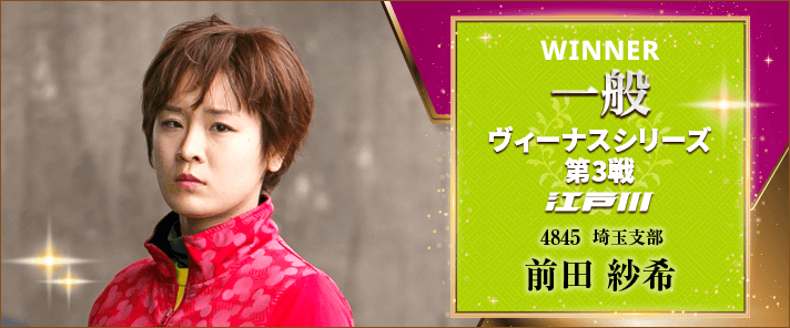予選は遠藤エミがトップ通過。回り足も仕上がり、優勝濃厚のムードだったが、準優12Rで痛恨のフライング。一気に波乱の流れになった。優勝戦は清水が展開をつくったものの、前田も訪れたチャンスを見事にものにした。7月からは念願のA2級に初昇格。自ら弾みを付ける一発を決めた。なお、前田の次走は5月26日からの戸田男女混合シリーズ戦に出場する予定。