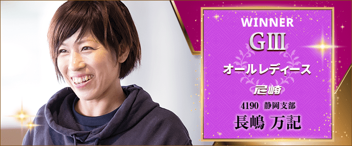 長嶋は予選8走で7勝をマーク。断然のレース内容で予選をトップ通過した。最大のピンチは準優12R。6番手スタートだった上に、1周1M、2Mとも松尾夏海に迫られたものの、ぎりぎりしのぎ、自ら作った流れを絶やさなかった。尼崎の優勝は4回目、抜群の水面相性を発揮した。女子賞金ランクも6位へ浮上した。なお、次走は6月11日からの丸亀オールレディース戦に出場する予定。