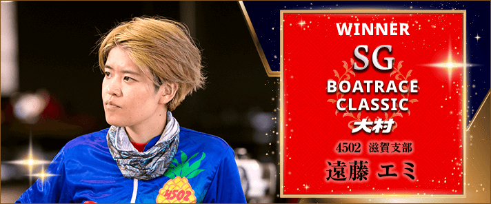 ボートレース発祥から約70年、歴史的な偉業が生まれた。大村ナイターでのSGボートレースクラシックを制したのは女子レーサー、遠藤エミだ。予選を1・3・1・1・3・2着のオール3連対でトップ通過した遠藤は、準優でイン逃げを決めてSG初優出をマーク。寺田千恵と横西奏恵に続く女子史上3人目(4件目)のSG優出を果たす。そして1号艇で迎えた優勝戦ではインからコンマ07のスタートで逃げ快勝。女子レーサー史上初のSG優勝を飾った。