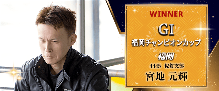 35歳でのG1初制覇だ。福岡周年を宮地元輝が制した。昨年9月の桐生周年以来となる約1年ぶりのG1出場となった宮地は、初日にイン逃げ、3日目に5コースまくり差しを決めるなど軽快な走りを見せ、予選を1・3・4・2・1・4着で2位通過する活躍。準優ではイン逃げを決め、18年の唐津周年以来となる約4年5カ月ぶり4回目のG1優出を果たす。そして優勝戦では2コースから鋭い差しハンドルで先頭へ。デビュー15年4カ月目でG1初タイトルを手にした。