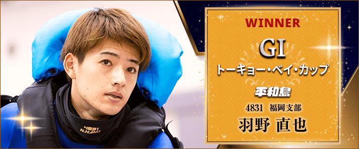 平和島周年で頂点を射止めたのは羽野直也だ。初日2着1着と上々のスタートを切った羽野は、2日目以降も2・2・1・2着と安定した走りを披露。予選をオール2連対でトップ通過する。そして準優はインからコンマ09で逃げ切ると、優勝戦もインからコンマ12で他を寄せ付けず逃げ快勝。平和島初Vでトーキョー・ベイ・カップを制した。