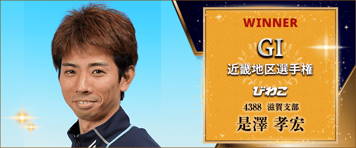 びわこで行われた近畿地区選手権。優勝戦は大波乱となった。オール2連対で勝ち上がってきた1号艇の藤山翔大に人気が集まったが、インからコンマ21とスタートで後手を踏む展開に。3コースからまくりを狙ってきた稲田浩二と1マークで大競りになった。これでブイ際にスペースが生まれると、地元の是澤孝宏が5コースからまくり差して一気に先頭へ。3連単7万円台の超高配当決着となった。