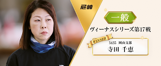 力強く押し切った。シリーズリーダーの寺田千恵がフライング艇に、まくりを許さずに逃げ、前節若松戦からの連続優勝を飾った。今年は2回目、通算は74回目、尼崎は4回目の優勝になった。