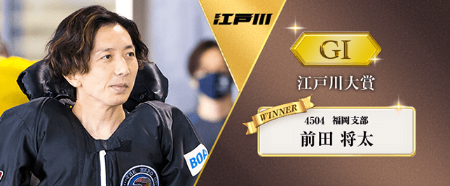 江戸川周年は波乱の結末となった。向かい風3m、波高5cmで行われた優勝戦。長田頼宗がインからコンマ08のトップスタートを決めて先マイを狙うも、山口達也が3コースからツケマイで長田を沈める展開に。空いたブイ際には前田将太と石渡鉄兵が差し込み、バック直線で山口・前田・石渡が並んだ。この激戦を制したのは前田。2マークで冷静に差しを決め、黒いカポックでVゴールを駆け抜けた。
