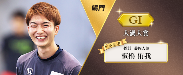 師走の鳴門決戦を制したのは板橋侑我だ。手にしたモーターは2連対率47位の低勝率機だったが、初日に5コースまくり差しで3連単3万円台の高配当を出す好発進。予選を1・5・2・2・2・3着の9位で通過する。そして準優では3コースまくり差しでインの池田浩二を破る快走。自身3回目のG1優出を果たす。これで勢いに乗った板橋は優勝戦でも3コースまくり差しでインの白井英治を撃破。準優・優勝戦をいずれも3号艇で制して頂点に立った。