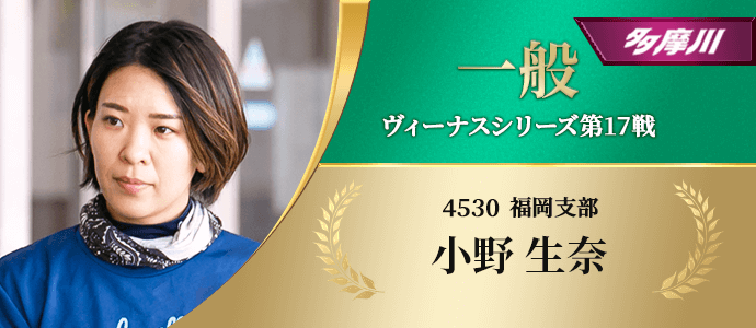 4日目連勝の守屋が逆転で予選トップ通過。しかし、準優12Rで3着に敗れ、予選2位で準優11Rを勝った小野に優勝戦の1号艇が巡ってきた。前期分のフライング休みを残す中、優勝戦のスタートは圧巻の0台。さすがの勝負度胸、底力を見せつけた。今年の女子賞金ランクは46位へ押し上げた。なお、次走は11月28日からのG1三国開設71周年記念に出場する予定。