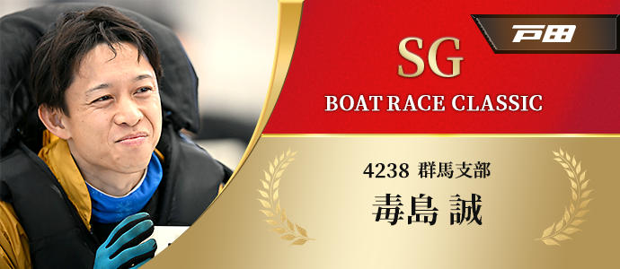 戸田でのSG第59回ボートレースクラシック。シリーズ4日目が荒天のため7R以降中止打ち切りとなるなど波乱含みの大会となった。そんな激戦を制したのは毒島誠だ。予選を3・1・1・2・2着の3位で通過し、準優でイン逃げを決めて優出切符を獲得。優勝戦は追い風10mの厳しいコンディションとなり、イン先マイの吉川元浩が転覆を喫するなか、毒島は2コースから差し切って先頭へ。黒いカポックでVゴールを駆け抜け、クラシック初制覇を果たした。