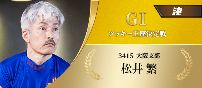 王者が魅せた。津周年を制したのは松井繁だ。2連対率3位の好モーター59号機を引き当てた松井は、4日目に2コース差しと1コース逃げで連勝を飾って予選を2・2・3・4・2・1・1着でトップ通過する活躍。そして準優はコンマ09、優勝戦はコンマ07で1コースから逃げ切って快勝。津周年は10年ぶり7回目の優勝となった。