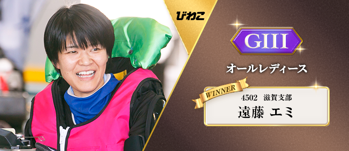 難条件でも確実に勝ち切った。断然人気を背負った地元の遠藤エミが、インからきっちりと逃げ、昨年末の蒲郡クイーンズクライマックスに続く2節連続、通算46度目の優勝を飾った。びわこは5度目の優勝になった。