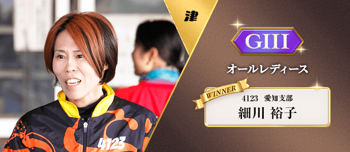 巧みにしのいだ。細川裕子が、インから踏ん張って逃げ、昨年10月の尼崎ヴィーナスシリーズ戦以来、通算17回目の優勝を飾った。津は初優勝になった。