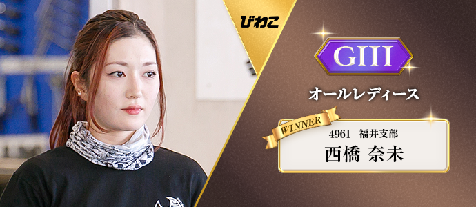 力強く押し切った。西橋奈未がインからミスなく逃げ、24年3月の三国戦以来、1年2カ月ぶり、通算7回目の優勝を飾った。びわこは初優勝になった。