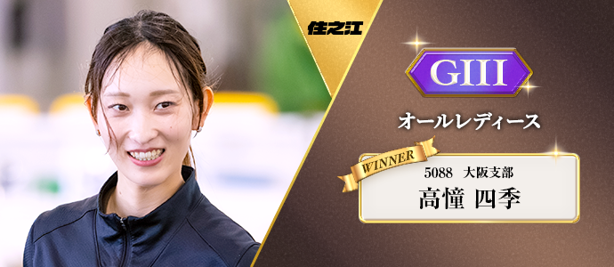 準優の悔しさを晴らした。高憧四季が4コースから差し伸び、昨年11月の常滑戦以来、通算3回目の優勝を飾った。地元住之江は初優勝になった。
