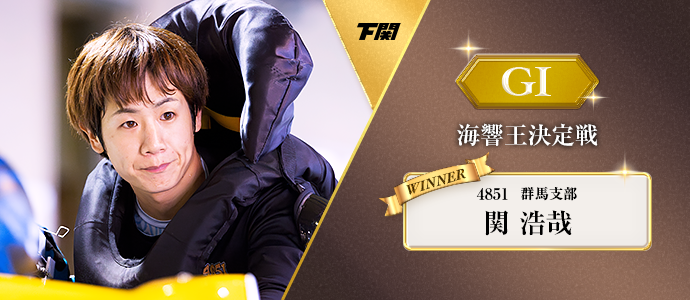 リズム最高潮だ。下関周年を関浩哉が制した。前々節の徳山周年で優勝、前節の福岡チャレンジカップで優出6着と好調モードで下関に乗り込んできた関は、初日に3コースまくり差しを決めるなど今節も軽快な走りを披露。予選を1・4・2・3・1・3着の2位で通過し、準優で1コース逃げを決めて3節連続優出を果たす。そして2号艇で迎えた優勝戦では2コースから差しハンドル一閃。黒いカポックでVゴールを駆け抜けた。