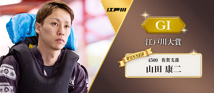 江戸川周年を制したのは山田康二だ。初日に2コースまくりで白星スタートを切った山田は、3日目にも3コース抜きで白星を奪うなど予選を1・2・1・2・3着の3位で通過する活躍。準優で1コース逃げを決めて優出切符を手にする。そして2号艇で迎えた優勝戦では2コース差し一閃。江戸川では2022年のG2モーターボート大賞以来となる優勝で、当地2つ目の記念タイトルを手にした。