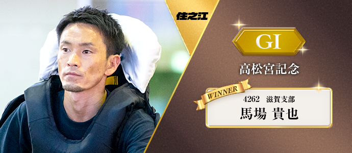 高松宮記念は馬場貴也の独壇場となった。初日12Rで2コース差しを決めて好スタートを切った馬場は、2日目に3コース差しと1コース逃げ、3日目に6コースまくり差し、4日目に5コースまくり差しを決めて開幕5連勝を飾る快進撃。予選を1・1・1・1・1・5着でトップ通過する。そして準優・優勝戦は1コースから逃げ切って圧勝。8戦7勝のピンラッシュで頂点に立った。
