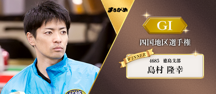 丸亀ナイターでの四国地区選手権。頂点に立ったのは島村隆幸だ。初日に4コースまくり、2日目にドリーム戦で1コース逃げ、4日目に2コース差しを決めるなど快走を連発した島村は、予選を2・1・1・4・1着の2位で通過する活躍。準優は1コースからコンマ00のタッチスタートで逃げ切り、予選トップ通過の森高一真が準優2着に敗れたことでポールポジションが巡ってきた。そして優勝戦では森高一真と林美憲に接戦に持ち込まれたものの、2マークで混戦をさばいて先頭へ。地区選初Vを手にした。