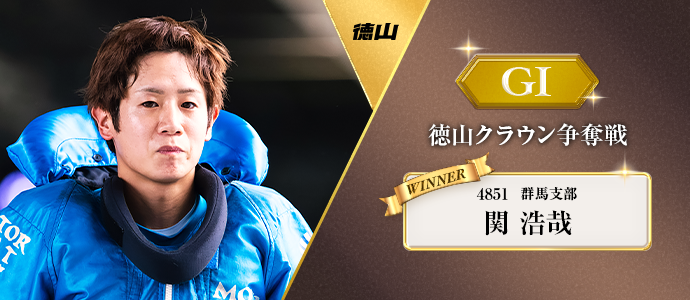 徳山周年を制したのは関浩哉だ。シリーズ初日の11月16日が誕生日だった関は、初日11Rで1コース逃げを決めてバースデイウィンを飾ると、3日目には4コースまくりを決めるなど予選を4・1・3・2・1・2着でトップ通過する活躍。準優は1コースから逃げ切ってポールポジションを手にする。そして優勝戦も1コースから他を寄せ付けず逃げ切り快勝。バースデイシリーズで見事に栄冠をつかんだ。