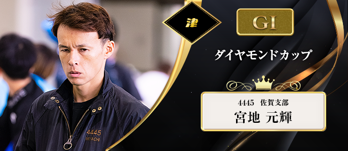 津ダイヤモンドカップを制したのは宮地元輝だ。3日目まで5・3・1・5着とリズムに乗り切れず予選17位という位置にいた宮地だが、4日目に1・2着の活躍を見せて勝負駆けに成功。予選を6位で通過し、準優では2コースから2着に入って優出切符を獲得する。そして優勝戦は風速6mの向かい風が吹くなか安定板使用の2周戦で行われ、4号艇の宮地は4カドからコンマ06のトップスタートを決めてまくり一撃。荒れ水面で鮮やかな速攻を決めた。