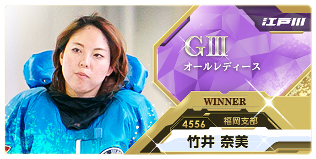 最終日は晴れ。ホーム追い風が徐々に強まり、優勝戦の風速は9メートルに達した。その中でもスロー3選手はコンマ19のスタートをそろえた。特に①竹井は1周1M、風圧を受けながらもインから丁寧に先マイ。②小野の差しを封じた。②小野が2番手で続き、2番差しになった④岩崎が3着に粘り、人気の決着となった。