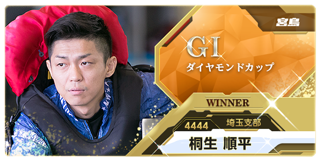 2日目が悪天候のため5R以降中止となるなど波乱含みの一節となった宮島ダイヤモンドカップ。混戦のV争いを制したのは桐生順平だ。2連対率最下位の低勝率モーターを引いた桐生だったが、3日目のドリーム戦で4コース差しを決めるなど軽快な走りを披露。予選を2・2・1・4・1・2・6着の2位で通過し、準優でイン逃げを決めて優出切符を手にする。予選1位の寺田祥が準優3着に敗れたことでポールポジションを獲得すると、優勝戦は他を寄せ付けずイン逃げ快勝。7日間の長い戦いで頂点に立った。