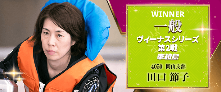 最終日はくもり。わずかな向かい風で優勝戦が行われた。枠なりの3対3から④原田がコンマ12のトップスタートを決めた。ダッシュ分もあり、有利な隊形になったが、③清水が舟を合わせ、やや強引に外マイ。その隙に①田口が的確に逃げ切った。②堀之内紀が差し続き、岡山支部勢のワンツー決着。④原田がいったん3番手に浮上したが、チルト0.5度に上げた⑥高田が追い上げ、3着に食い込んだ。
