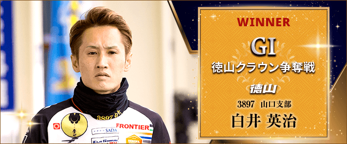地元のエースが魅せた。徳山周年を制したのは白井英治だ。手にしたモーターは2連対率38位の低勝率モーターだったが、整備を繰り返して予選を1・5・3・3・2・5着の14位で通過。準優では5号艇で4コースから2着に入って優出切符を手にする。そして優勝戦は6号艇だったが2コースまで動き、スタートで後手を踏みながら巧みな差しハンドルを決めて先頭へ。執念の走りで08年以来となる2回目の徳山周年制覇を果たした。