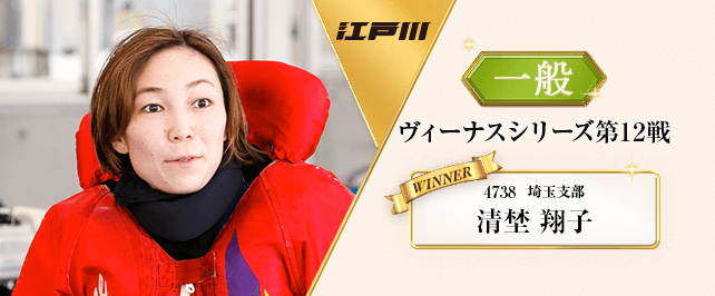 最終日はホーム追い風がやや強め。優勝戦は5メートルで行われた。枠なりの3対3からセンターまでの4艇が0台スタート。特に①清埜はコンマ03まで突っ込んだ。③浜田がまくり勝負に出たものの、①清埜がターンマークをきっちりと回って先制。強烈なパワーで一気に抜け出した。まくり差した④細川が2着。攻めた③浜田が3着に入った。