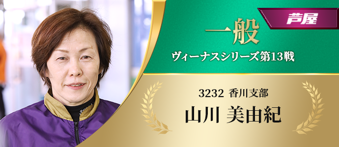 苦しい展開をしのぎ、巧みに立ち回った。山川美由紀が、2コースから差し伸びて大村オールレディース戦に続く、2節連続優勝を飾った。通算は82度目、芦屋は4度目の優勝になった。