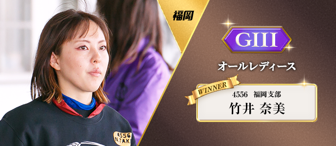 鮮やかなに攻め切った。竹井奈美が2コースからの強烈なツケマイで抜け出し、21年6月の江戸川オールレディース戦以来、4年1カ月ぶり、通算10回目の優勝を飾った。福岡は16年6月のデビュー初優勝以来、2回目のVとなった。