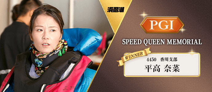 浜名湖での第1回スピードクイーンメモリアル。初代覇者の称号をつかんだのは平高奈菜だ。初日に3コースまくり差しを決めるなど上々の滑り出しを見せた平高は、4日目に2コースまくりと1コース逃げで連勝を飾り、予選を1・2・2・3・1・1着でトップ通過。準優で1コース逃げを決めてポールポジションを手にする。そして優勝戦でも1コースから他を寄せ付けず逃げ切り快勝。節間オール3連対で頂点に立った。